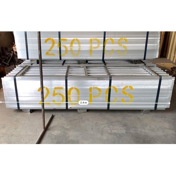 | Thickness (mm) | Zinc (g/m2) | Rib distance (mm) | Weight (kg) | Width / Length (mm) |
